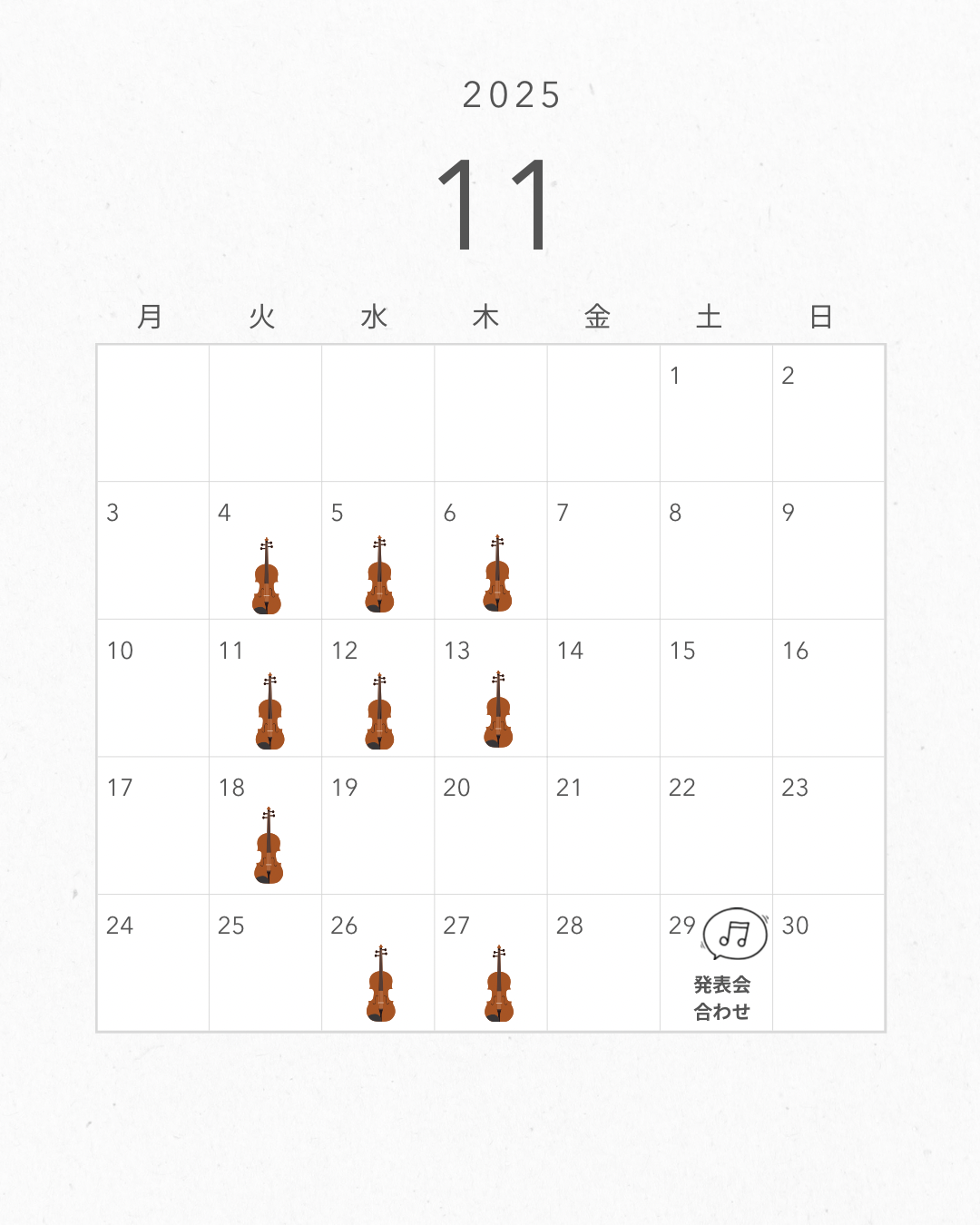 バイオリンコース 3歳〜 月3回(36回/年) 1回30分 8,000円/月 月3回(36回/年) 1回40分 10,000円/月 |